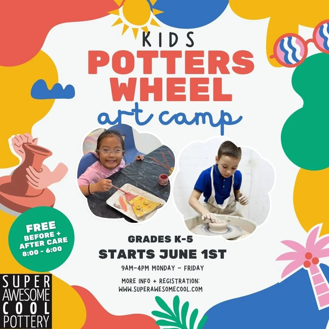 Good Ol' Summertime: Warm days, swimming, watermelon . . . make summertime special! We will have a good ol’ time creating summer themed sculptures and canvases together. Every camper will also create 2 bowls on the potter's wheel!June 30 - Jul 4, 2025 (July 4 is on a Friday)